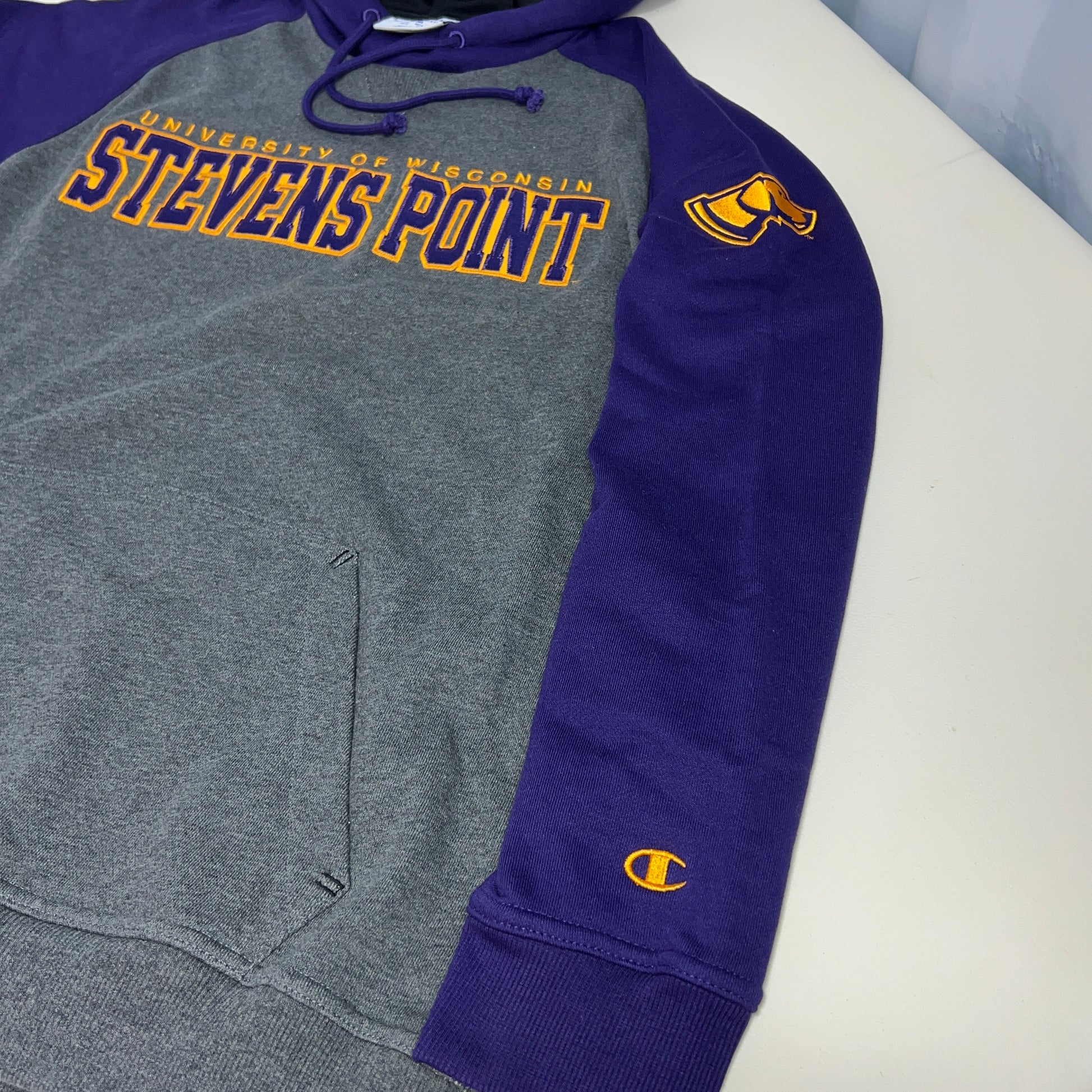 UW Stevens Point Pointers Embroidered Hoodie - Medium - Champion